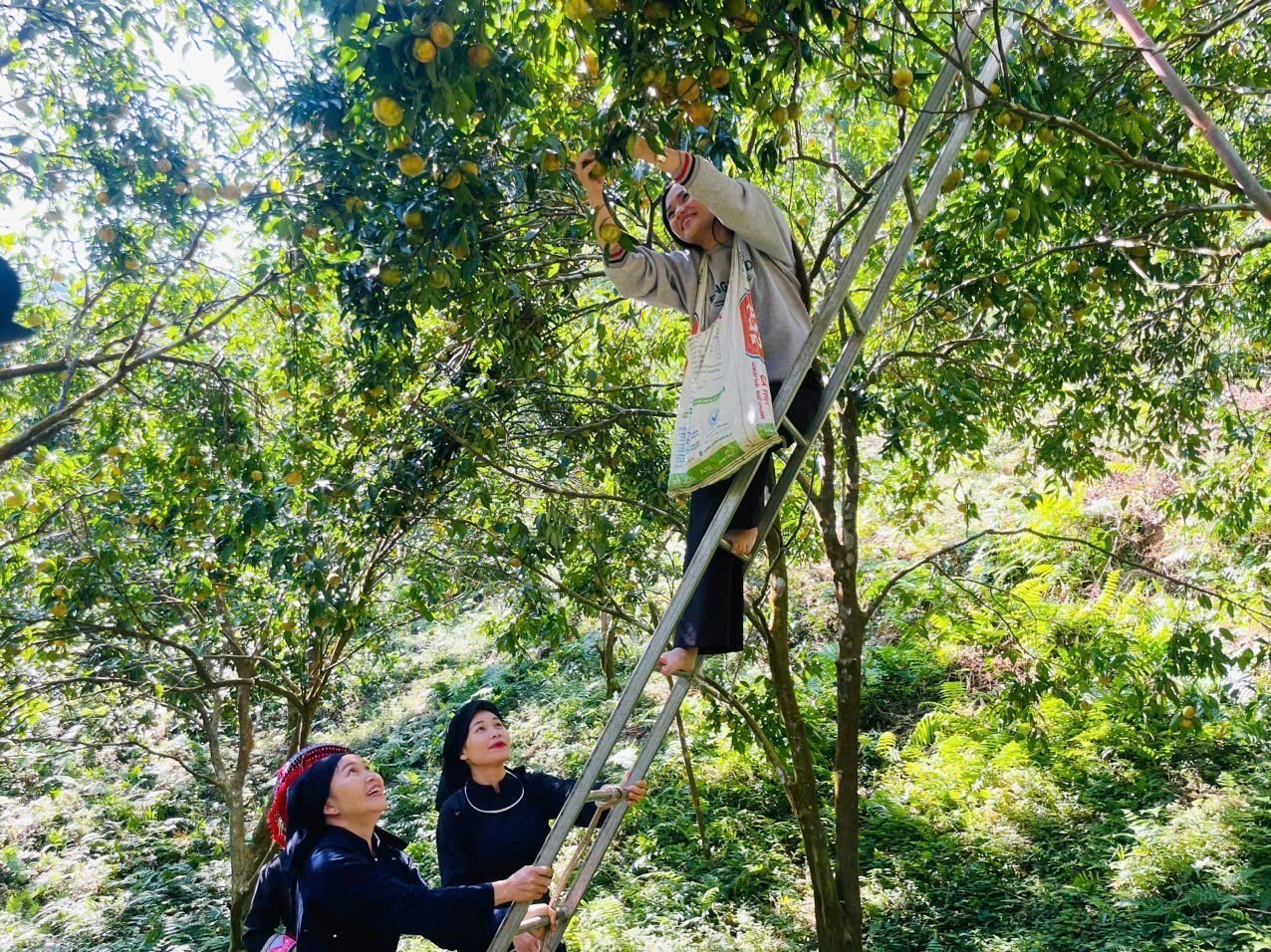 Trong ánh nắng của tiết trời cuối năm, những triền đồi trải dài ở xã Bạch Thông, tỉnh Thái Nguyên rực lên màu vàng ươm của quýt chín. Thời điểm này, quýt đang vào chính vụ thu hoạch, bà con phấn khởi vì quýt năm nay được giá.