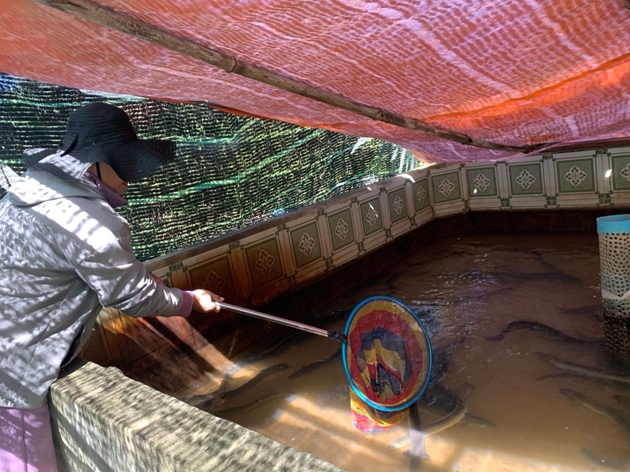 Gia đình chị Nguyễn Thị Choan ở thôn 1, xã Đam Rông 2 cũng có thu nhập ổn định nhờ các loại thủy sản như cá tầm, cá chình từ nguồn nước lưu thông dòng chảy suối Bằng Lăng thuộc địa bàn xã Đam Rông 2. Hiện nay, trung bình mỗi tuần gia đình chị Nguyễn Thị Choan thu hoạch hơn 20 kg cá chình nuôi trong bể xi măng với giá bán 450.000 đồng/kg. Đây là đối tượng thủy sản mới tại địa bàn xã Đam Rông 2. Nguồn giống cá chình được cung cấp và chuyển giao kỹ thuật từ một doanh nghiệp nuôi trồng thủy sản từ tỉnh Khánh Hòa. Kết quả sau 01 năm thả nuôi, tỷ lệ cá chình đạt chất lượng thương phẩm hơn 90%, phát triển khá tốt tại địa phương nên chị Choan tiếp tục xây dựng, nhân nuôi thêm 2 bể xi măng, nâng tổng đàn cá chình lên 6.000 con.