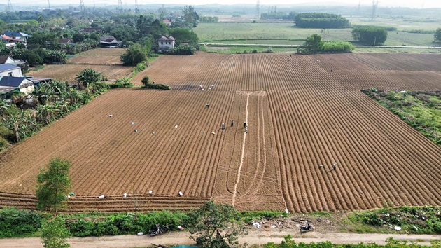 | Cán bộ khuyến nông hướng dẫn người dân trồng đúng mật độ |