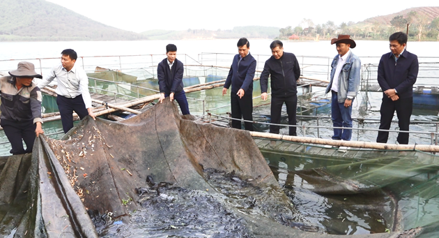 | Đoàn công tác đã thăm mô hình nuôi cá trê Hà Xá tại xã Nghĩa Lộc, tỉnh Nghệ An |
