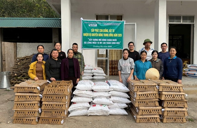 Sau khi nhận được sự hỗ trợ từ Trung tâm Khuyến nông Quốc gia, Trung tâm Khuyến nông và Giống nông lâm nghiệp tỉnh Cao Bằng đã phối hợp với Ủy ban nhân dân xã Trường Hà rà soát, kiểm tra, đánh giá điều kiện chuồng trại chọn được 66 hộ dân tham gia mô hình “Chăn nuôi gà lông màu 18M1 thương phẩm an toàn sinh học” tại xóm Hòa Mục và xóm Đôn Chương, xã Trường Hà. Tổ chức tập huấn hướng dẫn chi tiết về quy trình chăn nuôi gà thương phẩm theo hướng an toàn sinh học, cấp phát con giống, vật tư, vaccin, thức ăn cho các hộ tham gia mô hình. Trao tặng 01 tủ sách khuyến nông đặt tại thư viện của Trung tâm dịch vụ tổng hợp xã Trường Hà. Tủ sách đã góp phần nâng cao kiến thức sản xuất nông nghiệp, khuyến khích văn hóa đọc và hỗ trợ người dân vùng khó khăn tiếp cận thông tin khoa học kỹ thuật. Đây là nguồn tài liệu quý giúp cán bộ cơ sở, nông dân và Nhân dân trên địa bàn xã Trường Hà cập nhật kiến thức, áp dụng tiến bộ kỹ thuật vào sản xuất, nâng cao năng suất, chất lượng và hiệu quả kinh tế.