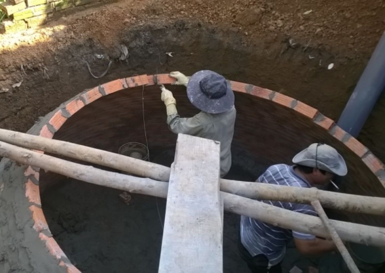 Công nhân đang xây hầm Biogas tại xã An Hòa (An Lão)
