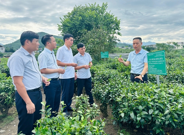 | Đại biểu tham quan mô hình sản xuất chè hữu cơ gắn với du lịch trải nghiệm tại HTX Trà và Du lịch cộng đồng Tiến Yên |