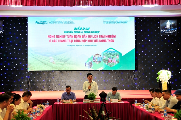 Nhằm thúc đẩy phát triển các mô hình trang trại tổng hợp gắn với du lịch trải nghiệm, qua đó nâng cao giá trị nông sản, tăng thu nhập cho nông dân, đồng thời thúc đẩy phát triển nông nghiệp xanh, tuần hoàn và bền vững, trong 02 ngày 24 – 25/9/2025, tại tỉnh Thái Nguyên, Trung tâm Khuyến nông quốc gia phối hợp cùng Sở Nông nghiệp và Môi trường tỉnh Thái Nguyên tổ chức Diễn đàn Khuyến nông @ Nông nghiệp với chủ đề: “Nông nghiệp tuần hoàn gắn du lịch trải nghiệm ở các trang trại tổng hợp khu vực nông thôn”.